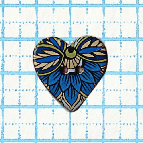 陶器製|ボタン|ウィリアム・ド・モーガン|花柄|六角形|28mm|英国製|ストックウェル・セラミックス|