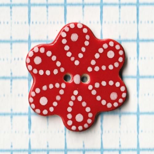 陶器製|ボタン|ハンドペイント|花柄|花形|30mm|英国製|ストックウェル・セラミックス   [stockwell-BD193]