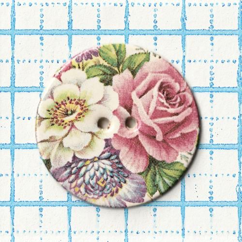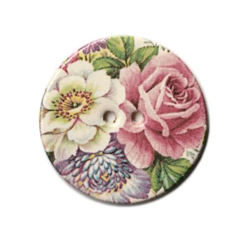 陶器製|ボタン|薔薇|花柄|円形|29mm|英国製|ストックウェル・セラミックス   [stockwell-BF667]
