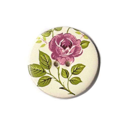陶器製|ボタン|薔薇|花柄|円形|24mm|英国製|ストックウェル・セラミックス   [stockwell-BF681]