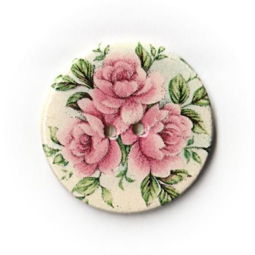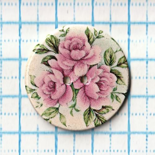 陶器製|ボタン|薔薇|花柄|円形|29mm|英国製|ストックウェル・セラミックス   [stockwell-BF1218]