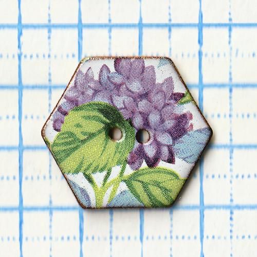 陶器製|ボタン|あじさい|花柄|六角形|28mm|英国製|ストックウェル・セラミックス   [stockwell-BF1412]