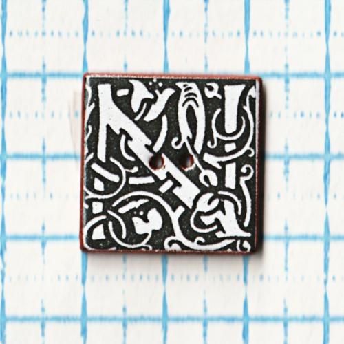陶器製|ボタン|ウィリアム・ド・モーガン|花柄|正方形|24mm|英国製|ストックウェル・セラミックス|