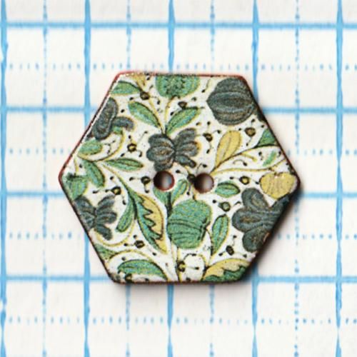 陶器製|ボタン|ウィリアム・モリス|植物柄|六角形|28mm|英国製|ストックウェル・セラミックス   [stockwell-BH60]
