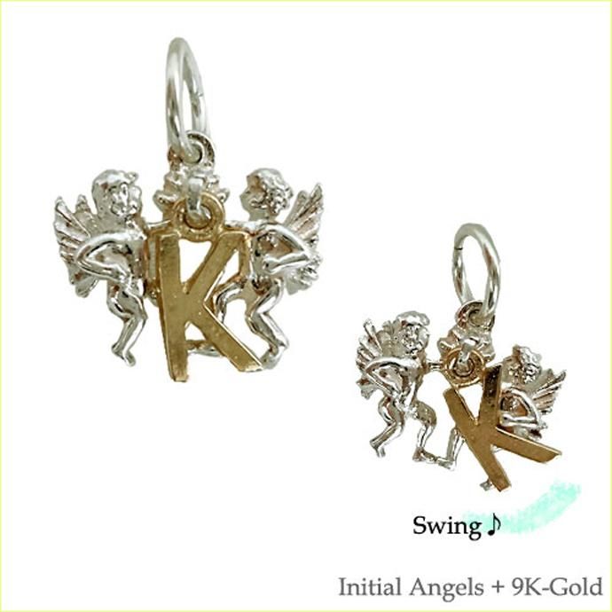 シルバーラッキーチャーム|9金付き|イニシャル・エンジェル|英国製   [cha-iangel9K]