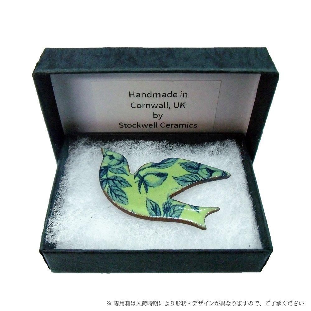 陶器製|ブローチ|フライングバード(グリーン)|花柄|ストックウェル・セラミックス|英国製|メール便OK   [swc-ra004]