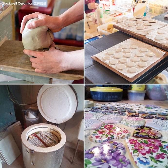 陶器製|ボタン|ウィリアム・ド・モーガン|花柄|正方形|24mm|英国製|ストックウェル・セラミックス|