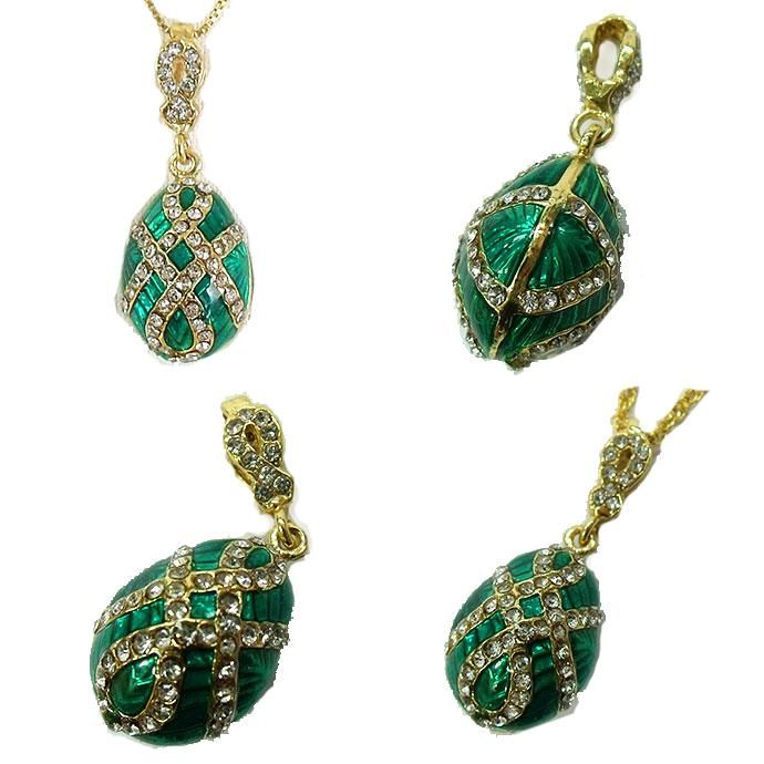 ハンドペイントエナメル|インペリアル・イースターエッグ|ペンダントトップ|グリーンライン|メール便OK   [A&C-cn343]