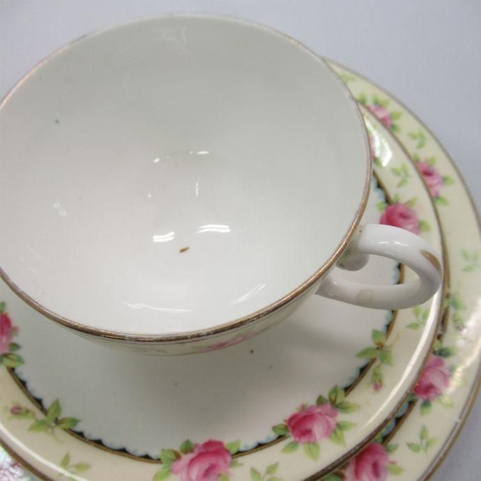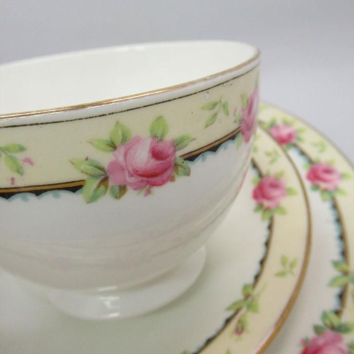 エインズレイの薔薇とレースが描かれた可憐なトリオです。