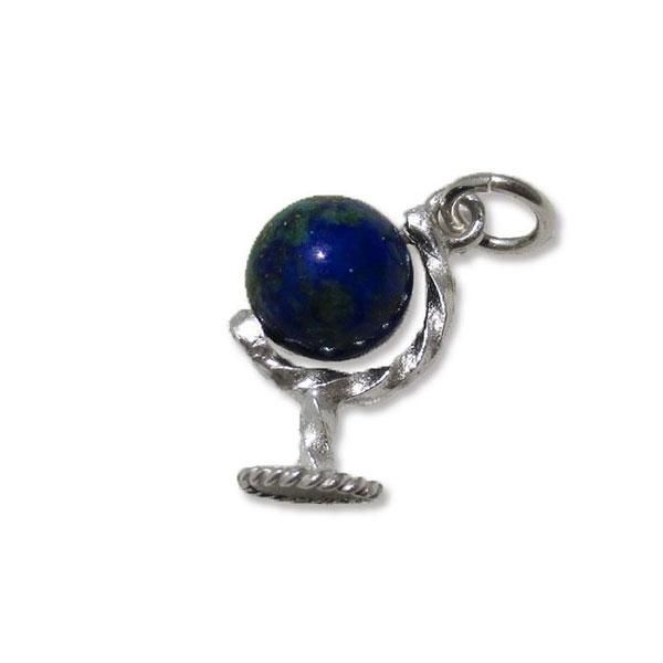 シルバーラッキーチャーム|地球儀(天然石・ラピスラズリ)|英国製|メール便OK   [cha-globe]