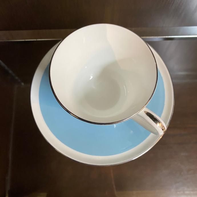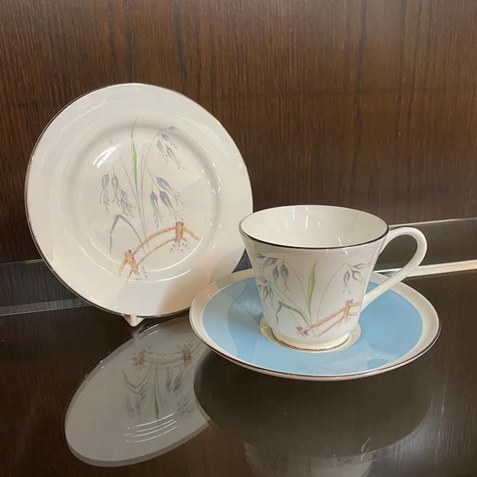 ホワイト×ブルーのエインズレイの爽やかなヴィンテージトリオです。春から夏にかけての季節にぴったりな色合いで、コーヒーでも紅茶でもしっくりとくる使い勝手の良いサイズとなっています。