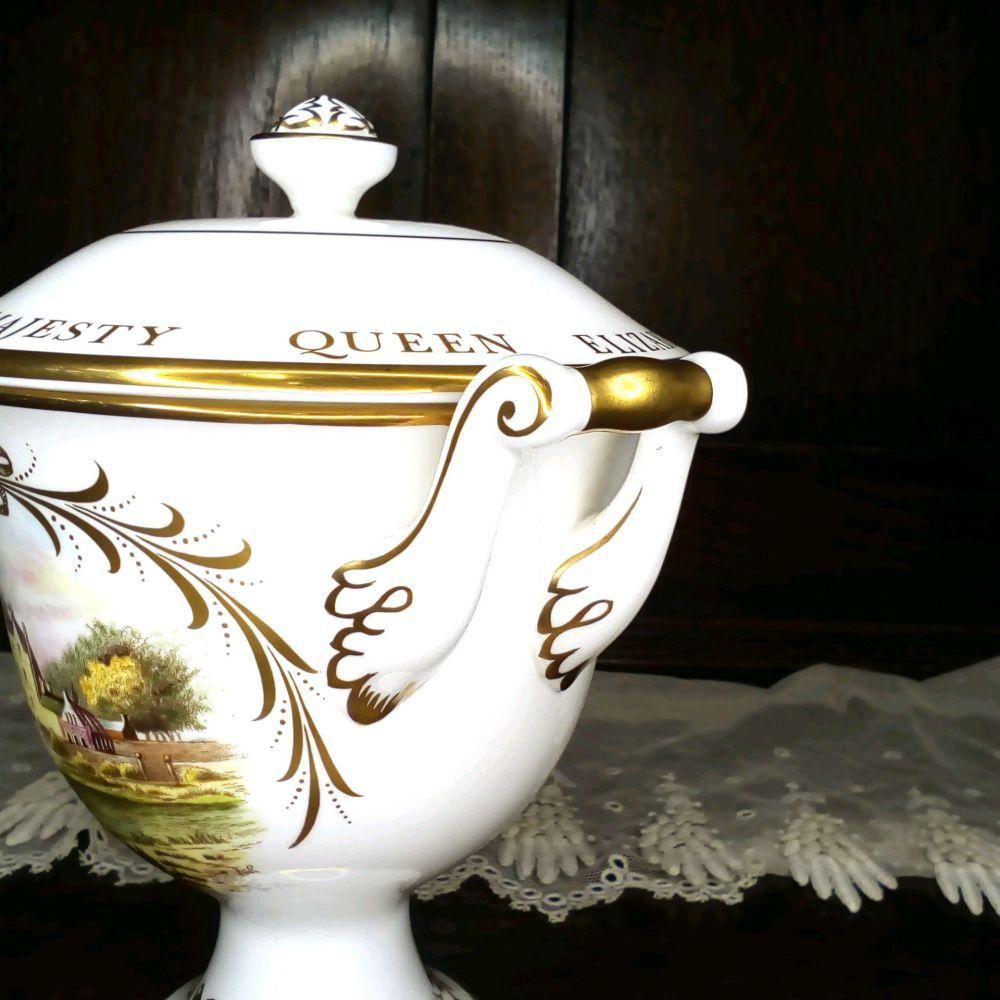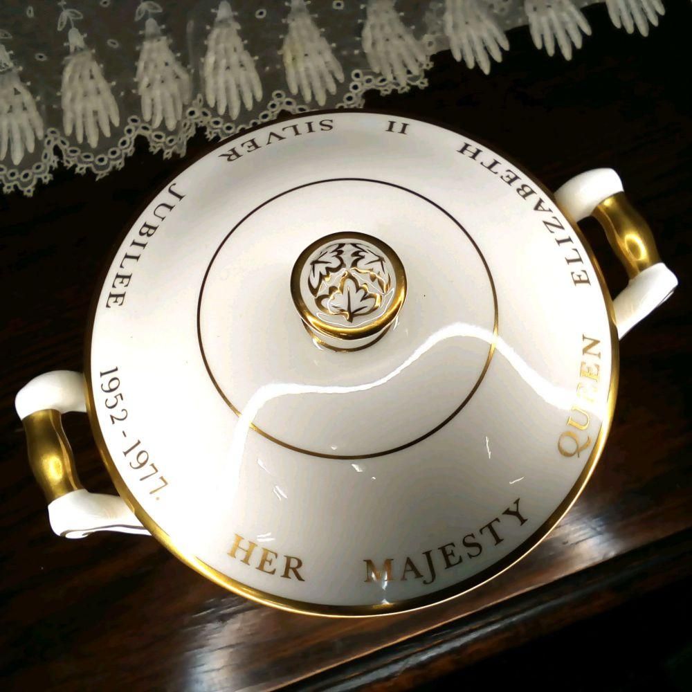 アンティーク食器|コールポート|ポット・コンポート|1977年エリザベス25周年シルバージュビリー記念一部ハンドペイント(手描き)   [ant-18A033]