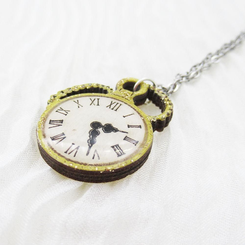 ネックレス|ベクベクメイクス|ポケットウォッチ・懐中時計|ハンドメイド|英国製|木製|メール便OK   [bekbek-pocketwatch-necklace]