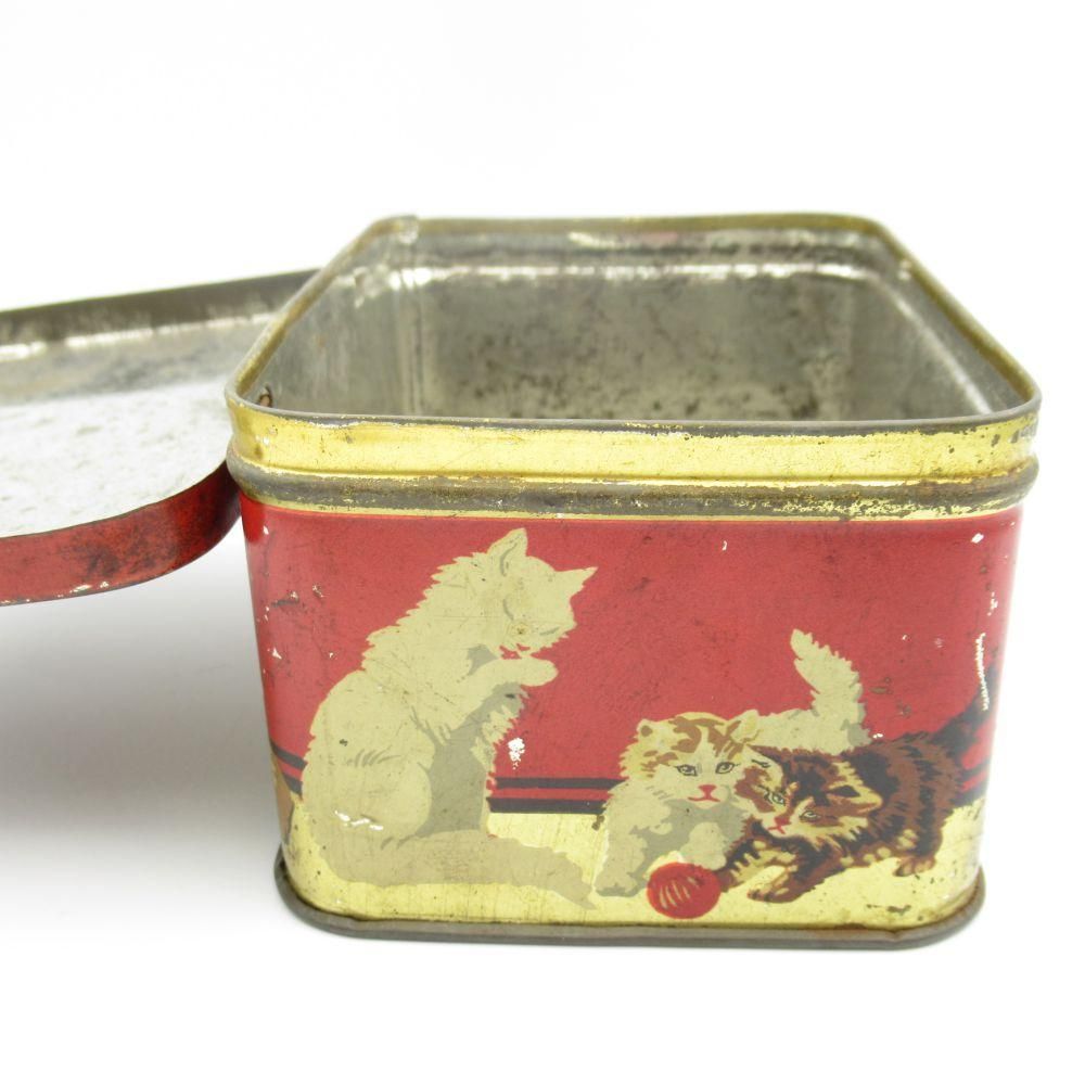 アンティーク雑貨・インテリア|ティン缶(ブリキ缶)|小物入れ|親子・猫|1900年頃|英国製   [ant-20A4104]