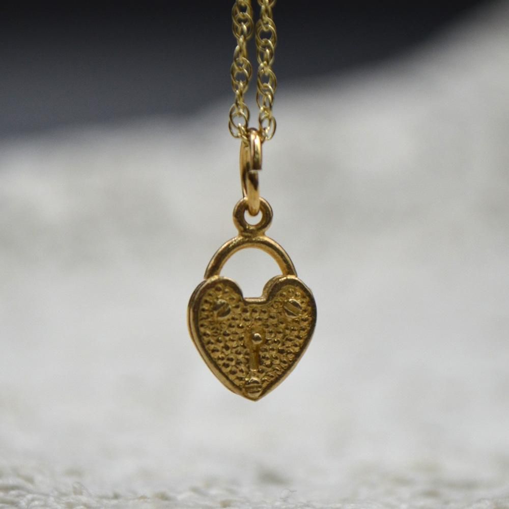 ラッキーチャーム|9金ゴールド・プチ|ハートロック|英国製   [cha-9gd-heartlock]