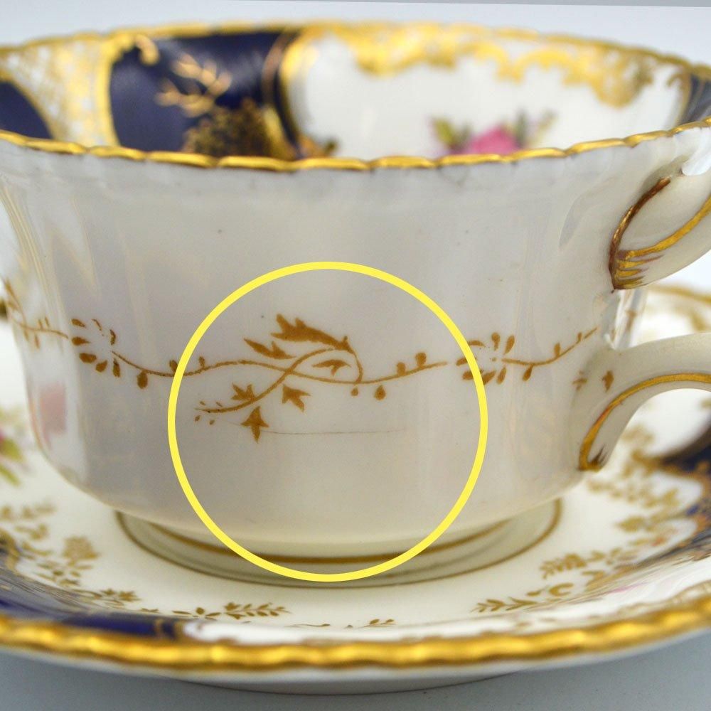 1790年代にイギリスのシュロップシャーで生まれたコールポート窯のカップ&ソーサーです。何度か別の窯と経営合併を行いますが、最終的にウェッジウッドグループの傘下となりました。傘下になったその後もブランド自体は引き継がれている歴史のある窯です。