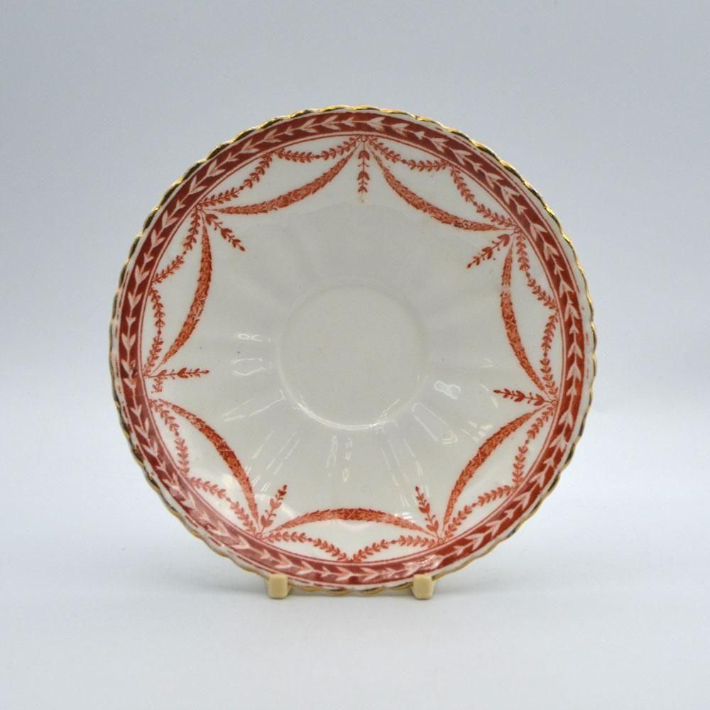 イギリスで買いつけた朱色のガーランド模様のトリオです。バックスタンプがないので詳しいメーカーや製造国はわかりませんが、おそらくヴィクトリアン期の作品だと思われます。