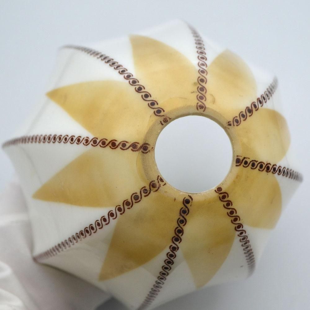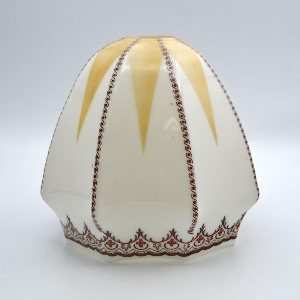 英国で買い付けたミルクガラスのあたたかみのあるランプシェードです。古い転写プリントにハンドペイントで着色がされています。おそらく1930年前後のアールデコ時代の物だと思われます。