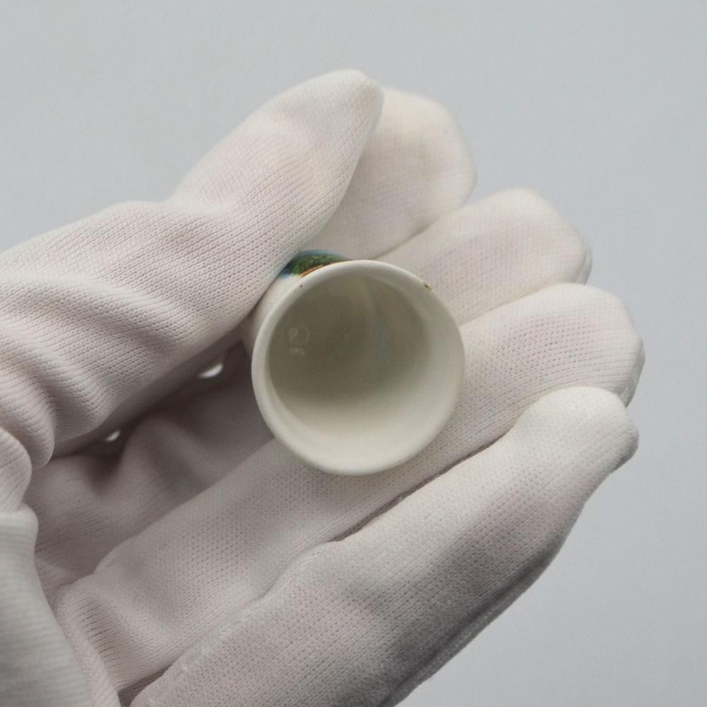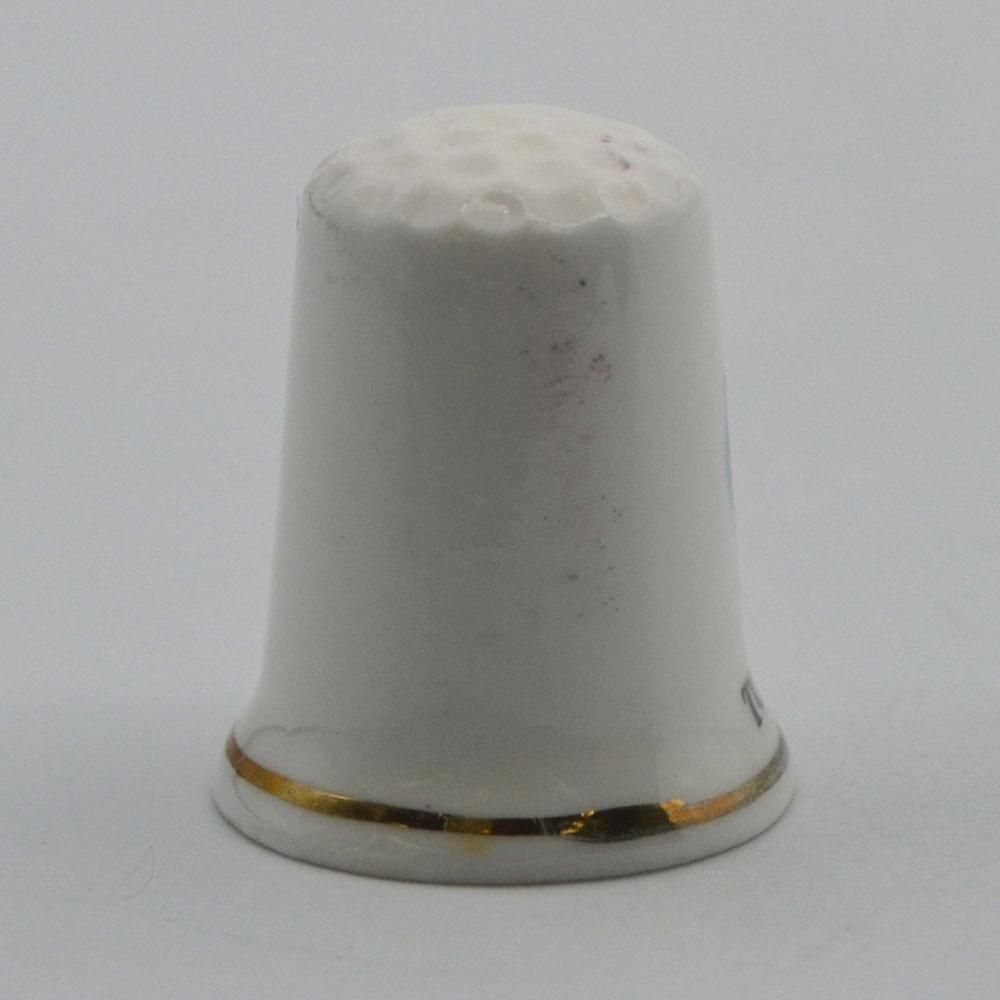 こちらは英国で買い付けたヴィンテージのシンブルです。かつてはお土産として販売されていた品で観光地の図柄がプリントされています。コレクションシンブルではありますが、余計な装飾がなくシンプルな造りなので実際に裁縫道具としても利用できるかと思います。